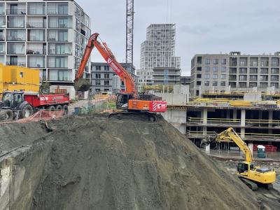 As part of our multi-year project in the new district Antwerp Nieuw-Zuid, Verhelst Aannemingen has recently taken a sustainable step concerning the transportation of soil.